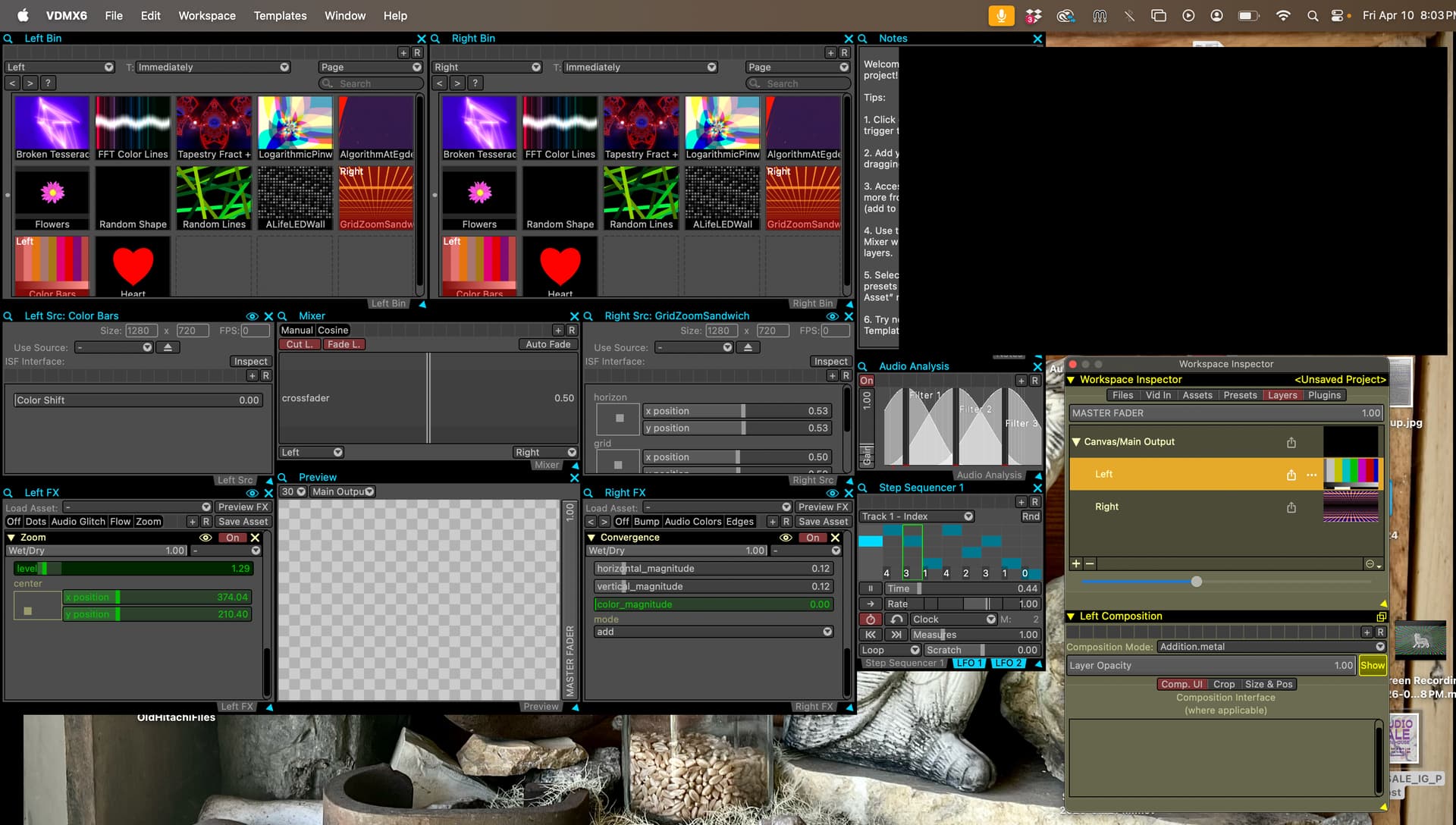 I’m brand new to VDMX. Using a 2021 Apple M1 Pro, Sonoma 14.8.4. My canvas only shows up as black and the videos I load do not appear. When I first opened the demo project it did work but now it doesn’t show anything. I haven’t made any changes or customized anything, just loaded some of my videos into the media folder.