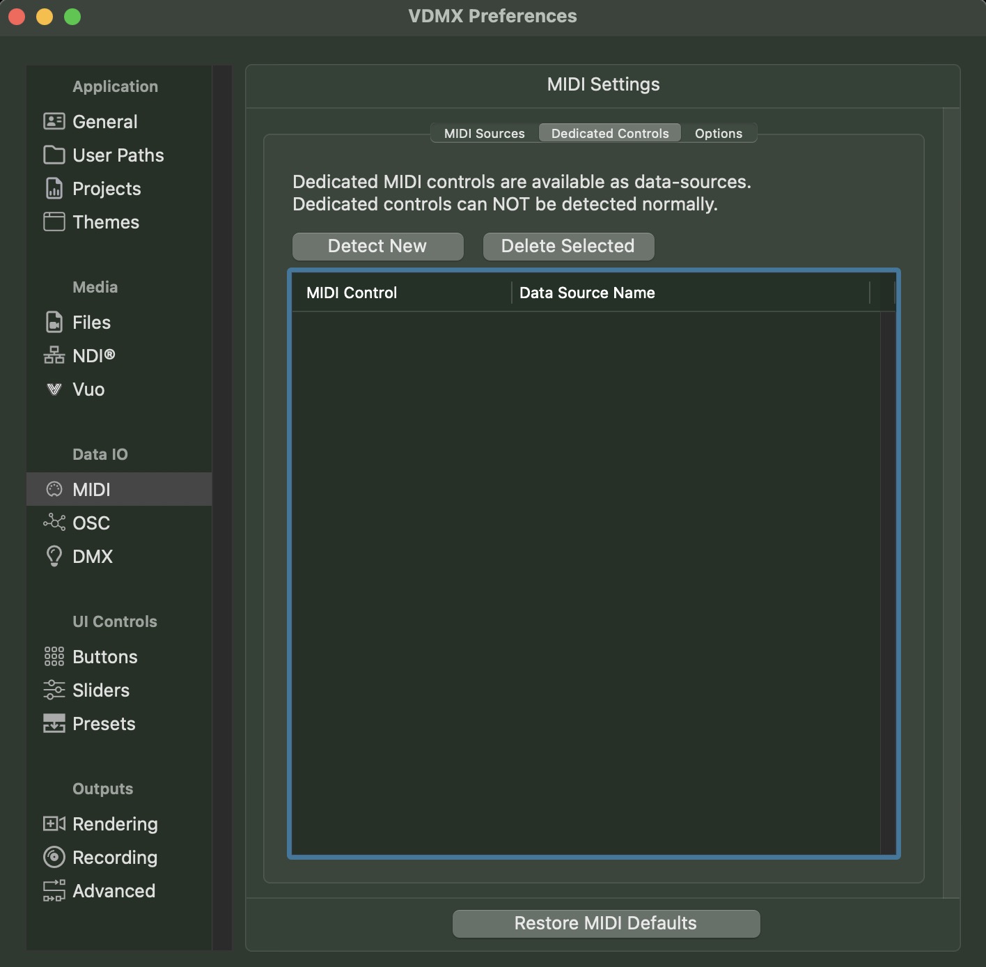 (Usually “dedicated” MIDI and OSC data-sources are particular useful when you’ve got a MIDI source that you want to be able to rapidly assign, or for situations where a particular MIDI / OSC value is being sent continuously, and you need it to be ignored during detect)