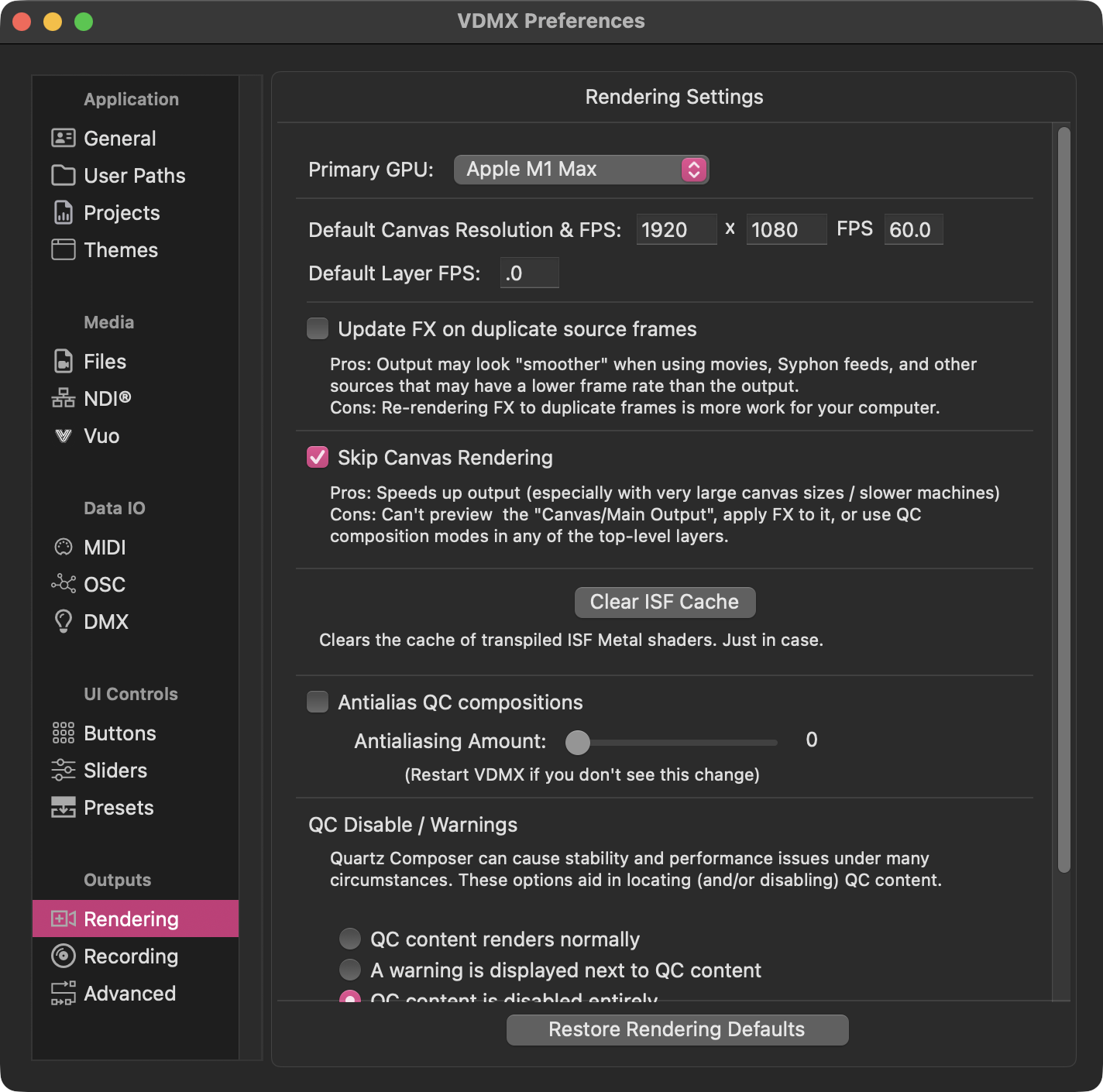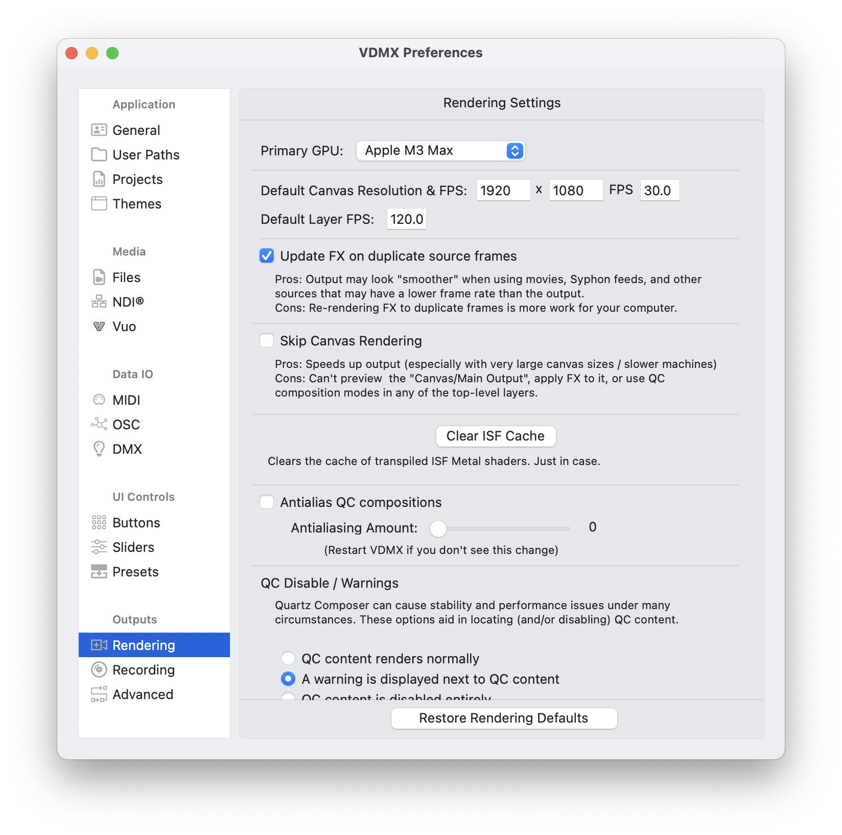 - Avoid renaming or inputing text in any box even inside vdmx when running a live show for now