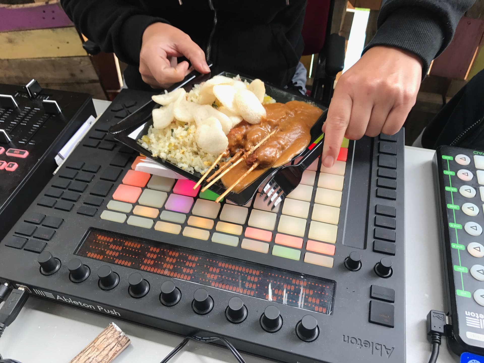 Ableton Push 1, Akai APC-Mini, Behringer CMD MM1, Novation Remote Zero MKII & TouchOSC hooked up to 2 Macbook Pro’s. One still running MacOS 10.7.5 because heavy use of Kineme2D & Kineme3D plugins for live manipulation of 3D-models mixed with a Roland V02HD HDMI mixer. My standard live setup. It’s quite portable for me.