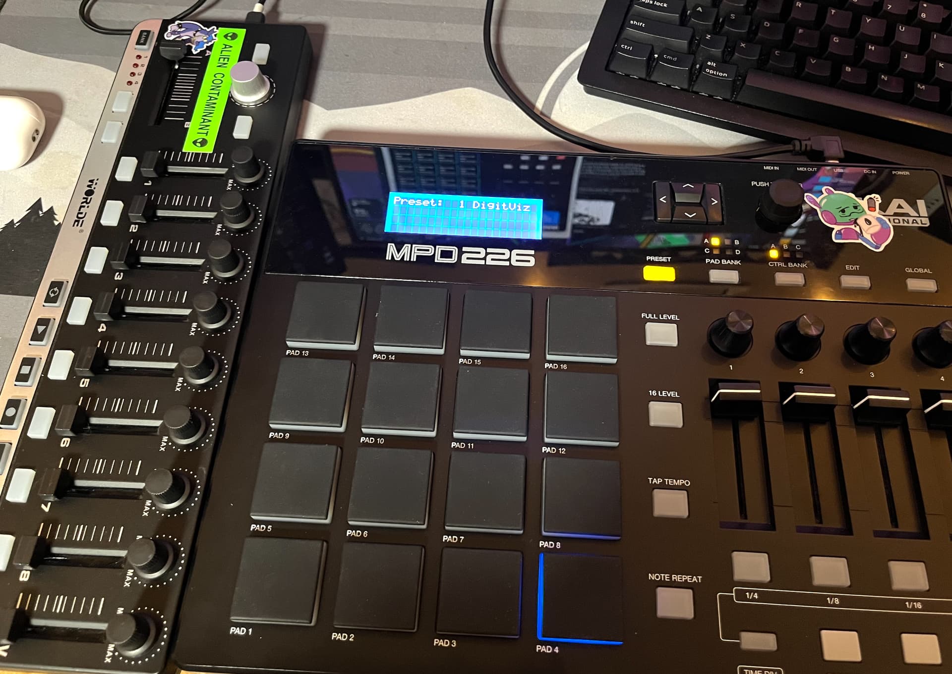 I’m doing local VJing in Portland, OR, here’s my controller setup and a screenshot of my layout! I write a lot of my own FX shaders and cut a lot of custom clips as well
